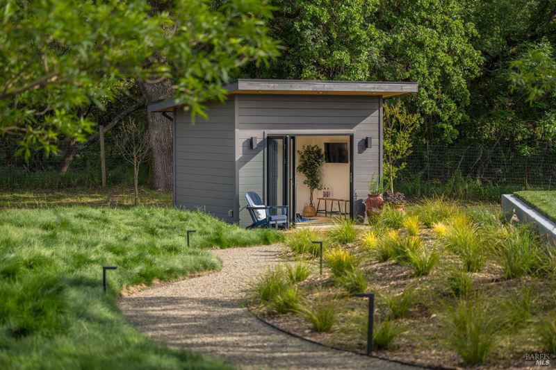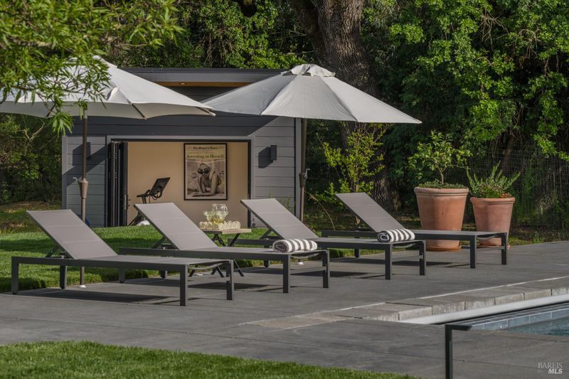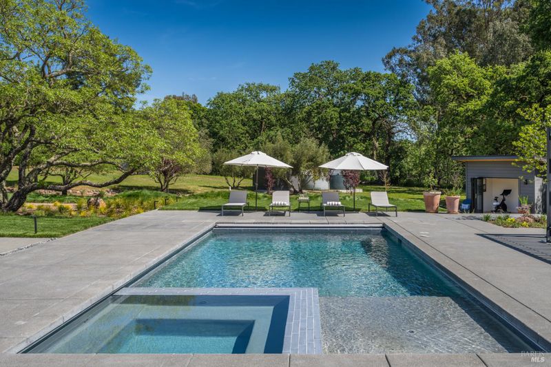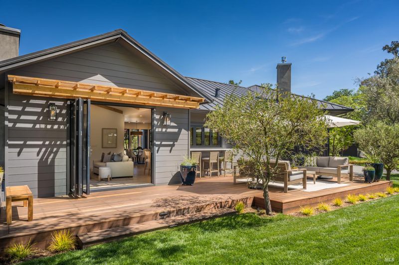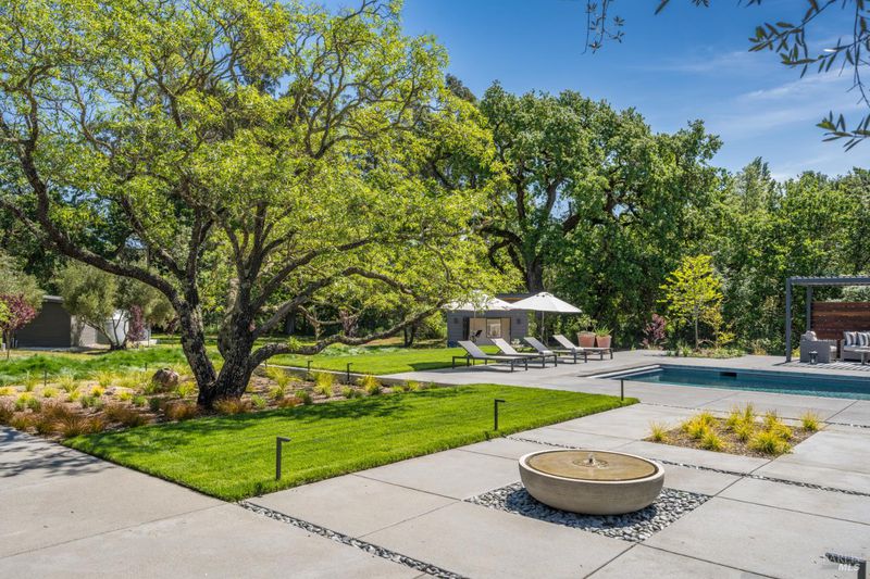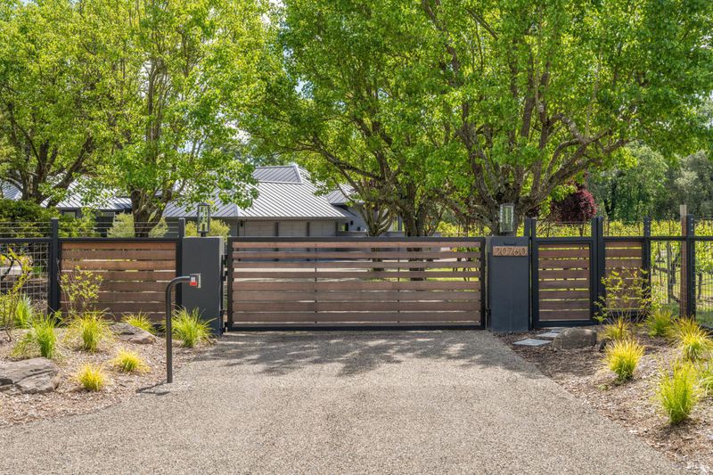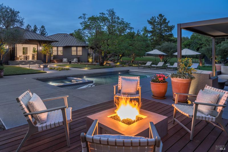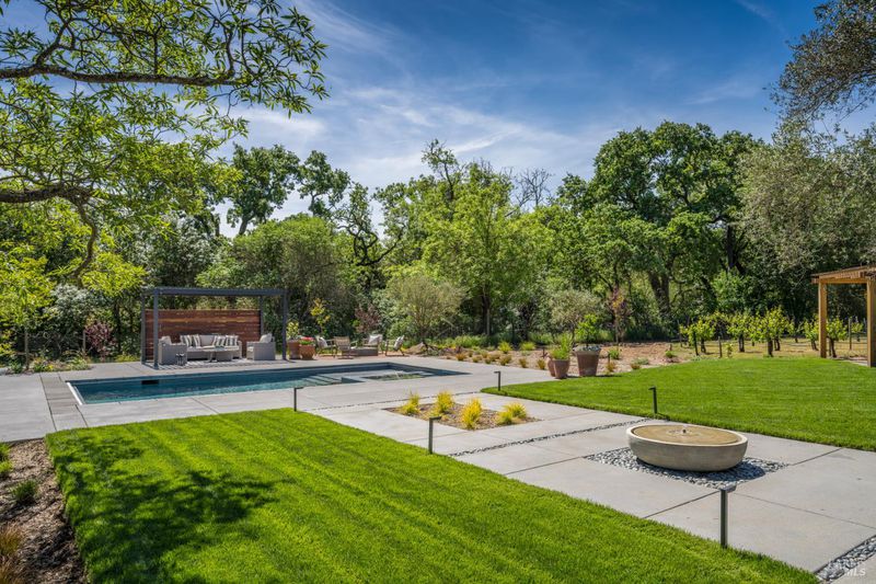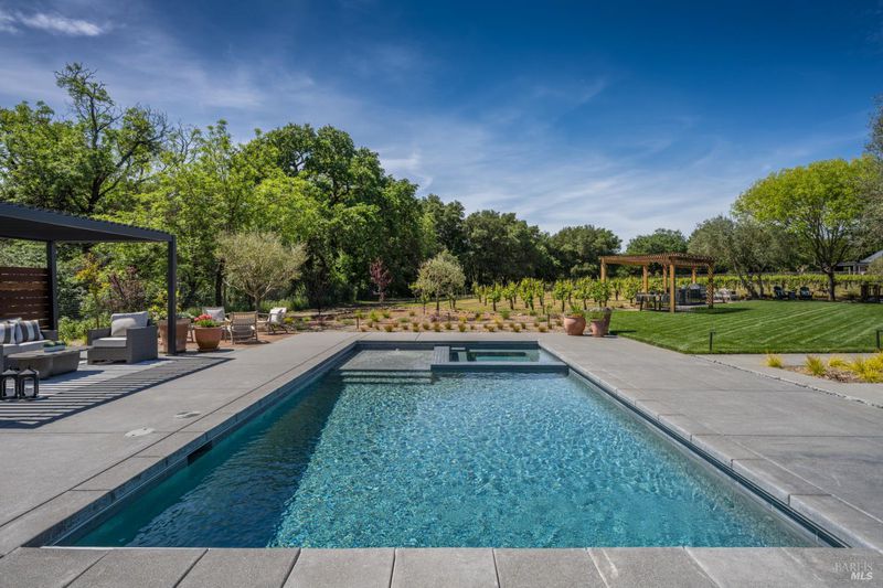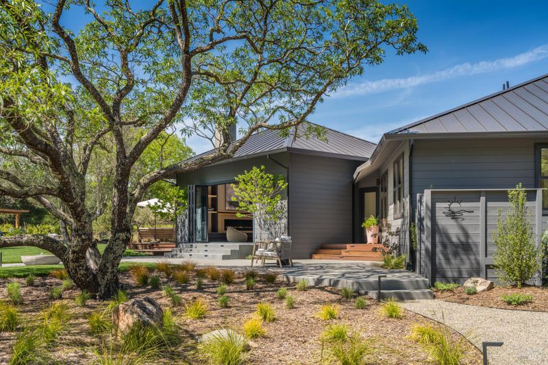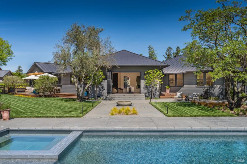 Tucked behind a private gated entry on approximately 3 acres, this fully reimagined Wine Country retreat blends modern design with a serene, park-like setting. Thoughtfully renovated throughout, the single-level residence offers ~3,190 sq. ft. with 3 bedrooms, 2.5 bathrooms, and flexible living spaces that allow the home to comfortably function as a 4-bedroom configuration. At the heart of the property, newly installed bi-fold doors create seamless indoor-outdoor flow to a resort-style setting, anchored by a newly constructed heated pool and spa with a Baja shelf, expansive mahogany (Batu) decking, outdoor kitchen, and multiple lounge and dining areas. The grounds have been extensively redesigned with curated landscaping, mature olive trees, winding pathways, and approximately 900 Pinot Noir vines, offering a charming hobby vineyard experience. A detached yoga/art studio and outdoor bath introduce a wellness-driven element, while the fully fenced and private setting provides exceptional versatilitywith ample room for a tennis or pickleball court, guest house or ADU, and further enhancement of the grounds. A rare turnkey offering where every detail has been thoughtfully executedcreating a refined, resort-like compound just moments from the best of Sonoma.