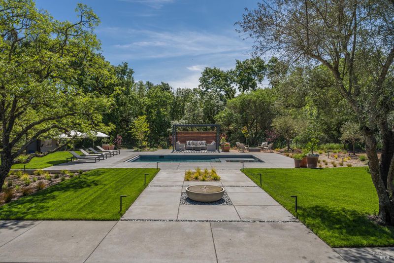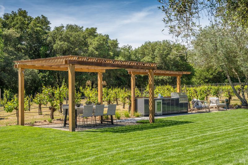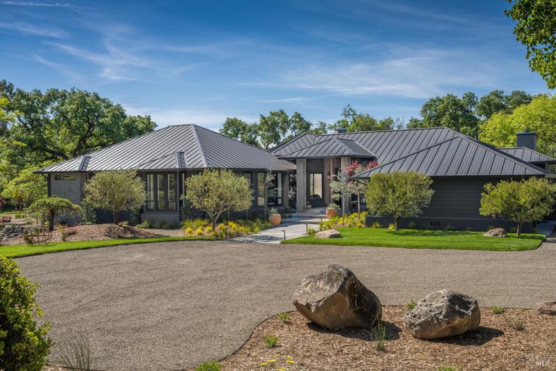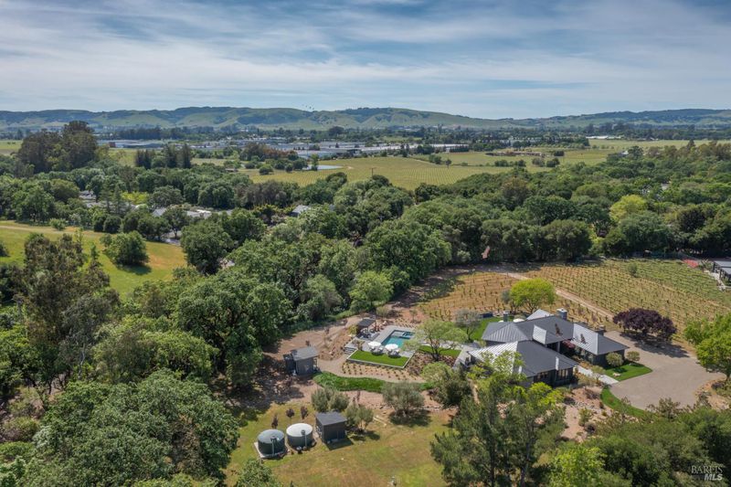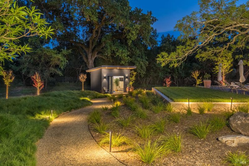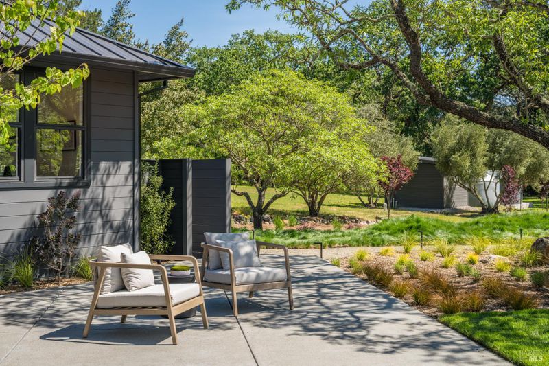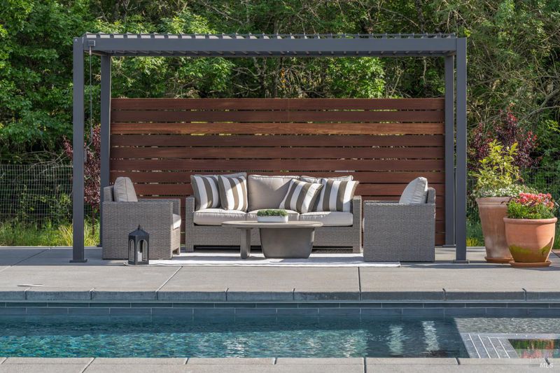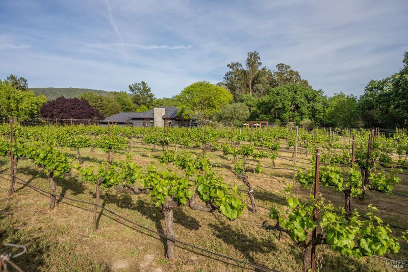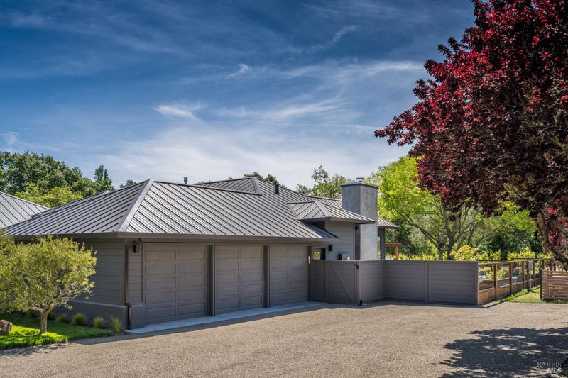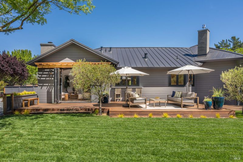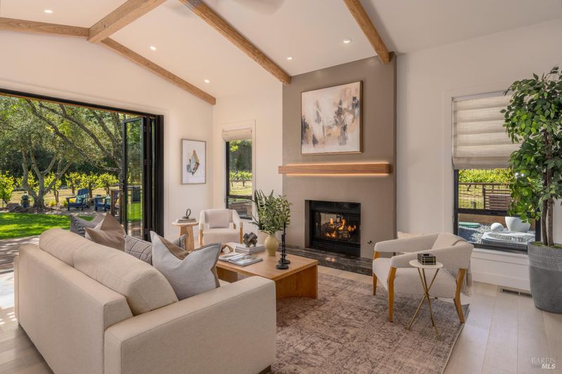 Tucked behind a private gated entry on approximately 3 acres, this fully reimagined Wine Country retreat blends modern design with a serene, park-like setting. Thoughtfully renovated throughout, the single-level residence offers ~3,190 sq. ft. with 3 bedrooms, 2.5 bathrooms, and flexible living spaces that allow the home to comfortably function as a 4-bedroom configuration. At the heart of the property, newly installed bi-fold doors create seamless indoor-outdoor flow to a resort-style setting, anchored by a newly constructed heated pool and spa with a Baja shelf, expansive mahogany (Batu) decking, outdoor kitchen, and multiple lounge and dining areas. The grounds have been extensively redesigned with curated landscaping, mature olive trees, winding pathways, and approximately 900 Pinot Noir vines, offering a charming hobby vineyard experience. A detached yoga/art studio and outdoor bath introduce a wellness-driven element, while the fully fenced and private setting provides exceptional versatilitywith ample room for a tennis or pickleball court, guest house or ADU, and further enhancement of the grounds. A rare turnkey offering where every detail has been thoughtfully executedcreating a refined, resort-like compound just moments from the best of Sonoma.