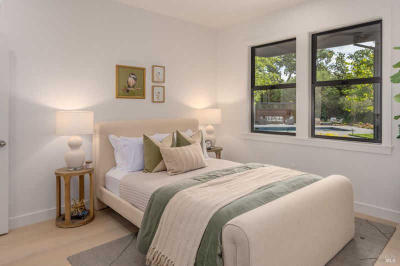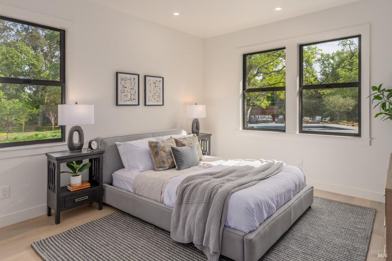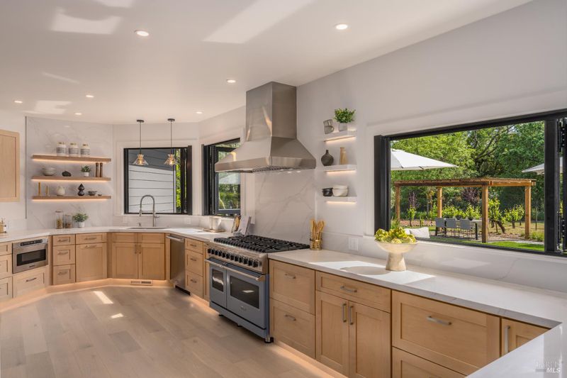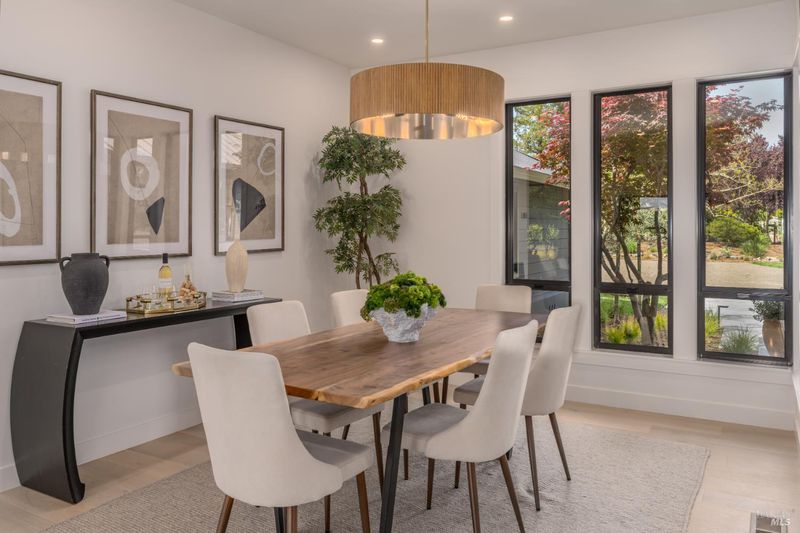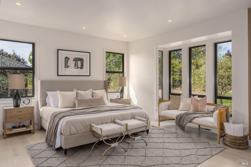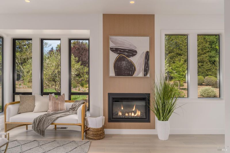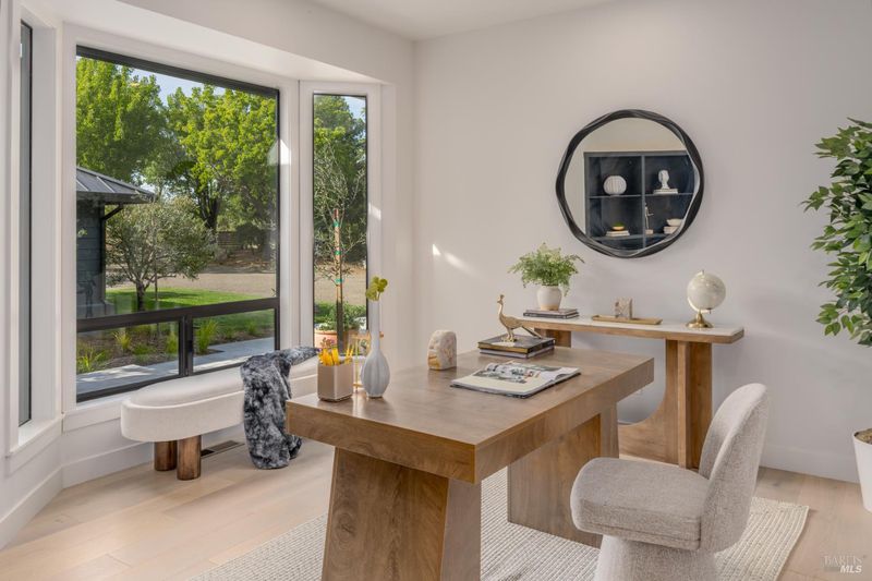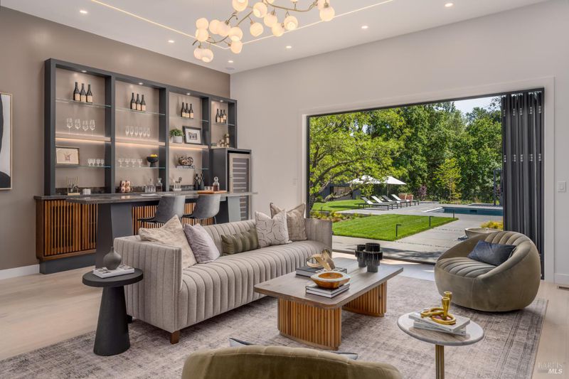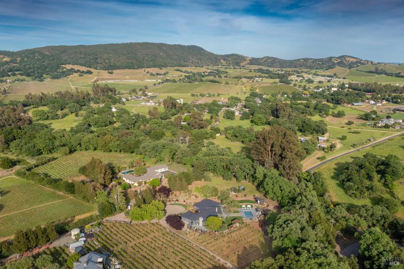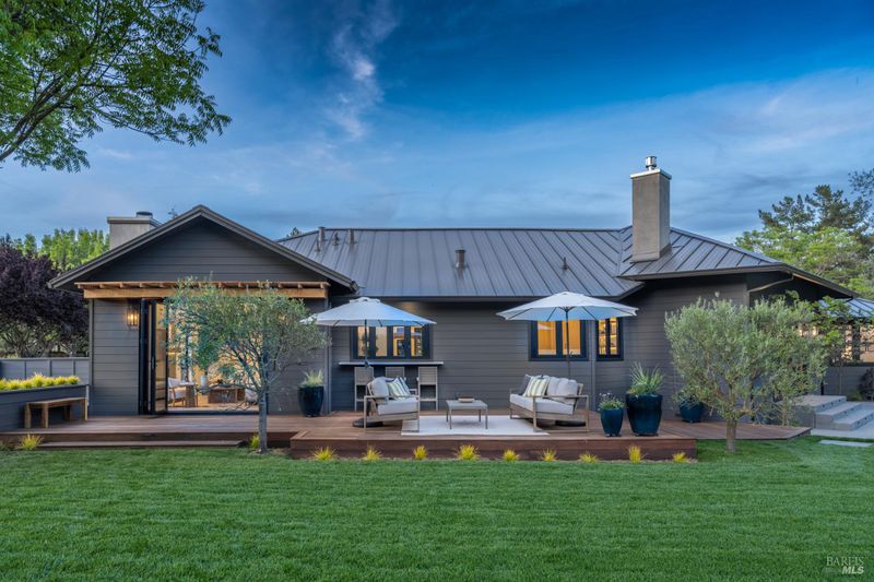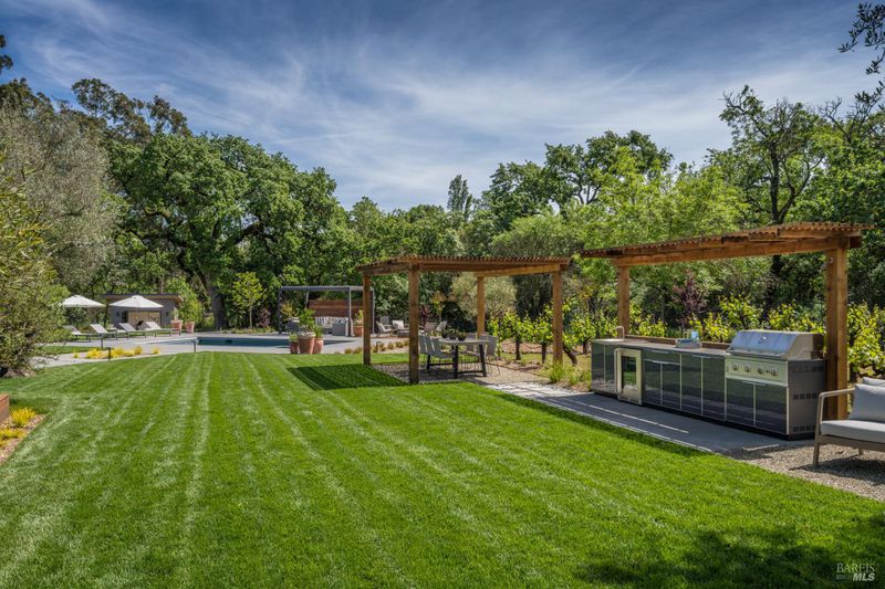 Tucked behind a private gated entry on approximately 3 acres, this fully reimagined Wine Country retreat blends modern design with a serene, park-like setting. Thoughtfully renovated throughout, the single-level residence offers ~3,190 sq. ft. with 3 bedrooms, 2.5 bathrooms, and flexible living spaces that allow the home to comfortably function as a 4-bedroom configuration. At the heart of the property, newly installed bi-fold doors create seamless indoor-outdoor flow to a resort-style setting, anchored by a newly constructed heated pool and spa with a Baja shelf, expansive mahogany (Batu) decking, outdoor kitchen, and multiple lounge and dining areas. The grounds have been extensively redesigned with curated landscaping, mature olive trees, winding pathways, and approximately 900 Pinot Noir vines, offering a charming hobby vineyard experience. A detached yoga/art studio and outdoor bath introduce a wellness-driven element, while the fully fenced and private setting provides exceptional versatilitywith ample room for a tennis or pickleball court, guest house or ADU, and further enhancement of the grounds. A rare turnkey offering where every detail has been thoughtfully executedcreating a refined, resort-like compound just moments from the best of Sonoma.