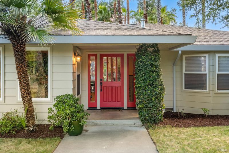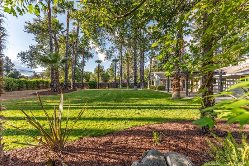 Set above the fog line on Howell Mountain, this single-level residence sits on a quiet corner lot within Angwin's established Sunset Drive neighborhood. At approximately 1,500' of elevation within the Howell Mountain AVA, this property offers a distinct mountain setting just minutes to St. Helena. The grounds span just over half an acre of level, usable land, rare for the area, with mature trees, expansive lawn, trellised seating area, and pergola. French doors from the dining area open directly to the rear grounds for easy indoor-outdoor living. The home measures approximately 2,454 square feet across a single level with no interior stairs. The living room is anchored by a wood-burning fireplace with stacked stone surround. The kitchen includes granite countertops, center island, gas cooktop, built-in oven, and views to the rear yard. The primary suite features a walk-in closet, sitting area, and direct outdoor access. The en suite bath includes double sinks, soaking tub, and double-headed shower. A sunroom off the suite offers flexible space for an office, retreat, or convenient nursery. Two additional bedrooms, one full bath, and a powder room complete the main residence, along with ground-floor laundry. A detached two-car garage with covered breezeway and additional off-street parking provides convenience for guests. This is an uncommon Howell Mountain setting defined by level ground, privacy, and proximity to St. Helena.