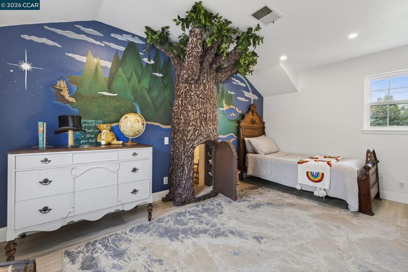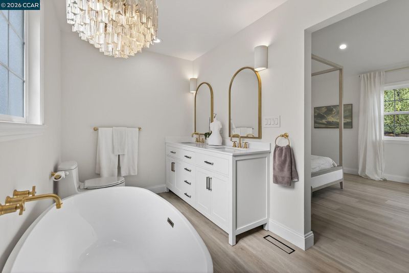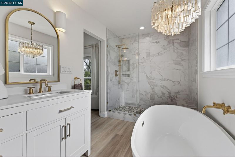 A gorgeous and beautifully remodeled home in this hidden gem of a neighborhood. This home has been updated with new windows, doors, flooring, lighting, paint and much more. It has been reconfigured into 5 bedrooms with one bdrm and bath as a separate unit with its own living space, kitchenette and laundry. The primary bdrm has vaulted ceilings with a sliding door leading to a new deck overlooking the expansive back yard decorated with oaks, redwoods and pine trees. You will love the designer walk-in closet as well as bath with double sinks, shower and soaking tub. The 2nd bdrm/office has a new ensuite bath. Upstairs leads you to 2 more bdrms and a full bath each with its own charm and character. Come experience this home with endless possibilities in person.