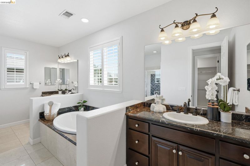 FORMER MODEL HOME! The kind of layout you don’t come across often, flexible, spacious, and actually functional for real life. This 3,845 sq ft two-story home offers 5 bedrooms and 3.5 bathrooms , including a full bedroom downstairs plus a bonus room with its own access to the front porch, perfect for a home office or even a 6th bedroom. Plantation shutters run throughout, and the main living areas feel open but still defined, with a large dining room and a living room featuring built-ins for storage or decor. The kitchen is set up for everyday living and entertaining, with stainless steel appliances, an oversized island with sink and seating, plus a built-in sub zero wine fridge and extra storage. A beautiful rod iron staircase adds to the character of the home and leads upstairs to a loft and a spacious primary suite with a fireplace, a stylish bathroom with soaking tub, and a walk-in closet with built-in organization. EV charger in garage, water softener, Paid off Solar, Freshly painted interior, TV, speakers, cameras, smart thermostat are all included and so much more! The backyard is a great size for entertaining, and you’re close to parks, schools, and shopping. OPEN HOUSE Saturday 4/11 & Sunday 4/12 12-3PM.
