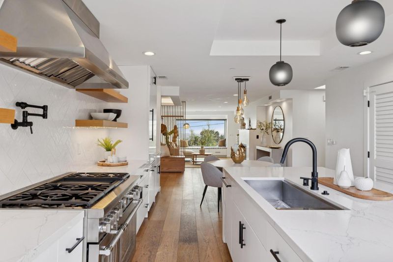 Extensively remodeled and thoughtfully expanded, this stunning Belmont home showcases luxury design, modern functionality, and breathtaking bay views. Featuring 3 bedrooms and 3 full bathrooms, including a spa inspired primary suite, the home also offers two additional bay view flex rooms ideal for offices, guest spaces, or creative use. White oak floors, LED lighting, skylights, and Kolbe dual pane windows fill the home with natural light, while smart features include Hunter Douglas motorized shades, Nest thermostat, cameras, and whole home prewiring. The chef's kitchen is equipped with Thermador appliances, Calcutta quartz countertops, a large island, Zip HydroTap system, and a wall of bi-fold doors creating seamless indoor outdoor living. The luxurious primary suite features a custom designed walk in closet and spa like bath with soaking tub, oversized shower, Robern mirrors, and TOTO Neorest system. Outdoor spaces offer patios, spa, and beautifully designed landscaping with lighting and mature plantings. Additional highlights include owned Tesla solar with two Powerwalls, EV charger, tankless water heater, and a finished two car garage with epoxy floors. Ideally located near parks, shopping, Caltrain, and top rated schools, this home delivers the best of Peninsula living.