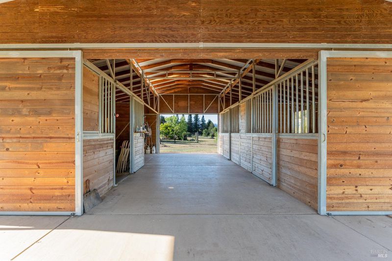 Nestled on 10 level acres, this beautifully maintained property features a 2,400 sq ft home with 4 bedrooms and 2.5 bathrooms, two separate living areas, a dedicated office/bonus room, and mudroom. Step inside to a welcoming entry foyer with vaulted ceilings and exposed wood beams, a cozy fireplace with insert, glass doors leading to the back yard deck & patio plus a quaint room off the kitchen with a propane stove, built-in bookcases, and wet bar. The owner recently installed luxury vinyl plank flooring throughout. The property boasts impressive outbuildings, including an 1125 sq ft metal shop with concrete floors and four roll-up doors and a two-story 2768 barn-style shop offering a downstairs workspace, separate tractor/equipment bay, and an upstairs loft with potential for guest quarters. These shops accommodate parking for up to 10 + vehicles. Outdoor living space features: a fenced garden area, (3)-stall 864 sq ft horse barn and tack room, cross-fenced pastures, a bounty of fruit trees including fig, plum, pear, persimmon, apples and grapes. Water sources include both domestic and ag district water, private well, and scenic pond stocked with fish and wildlife habitat. Zoned RR5 with future development potential. All this in a serene country setting just 20 min from Ukiah.