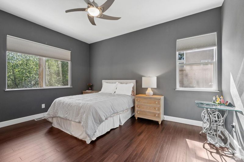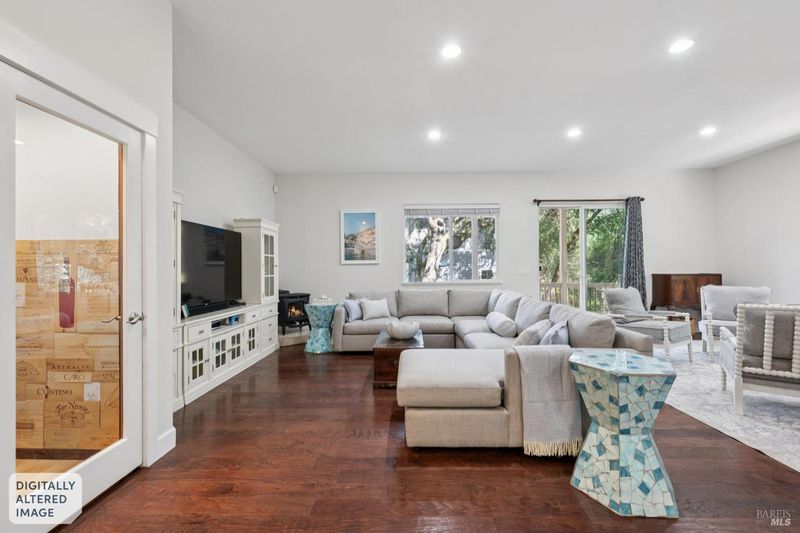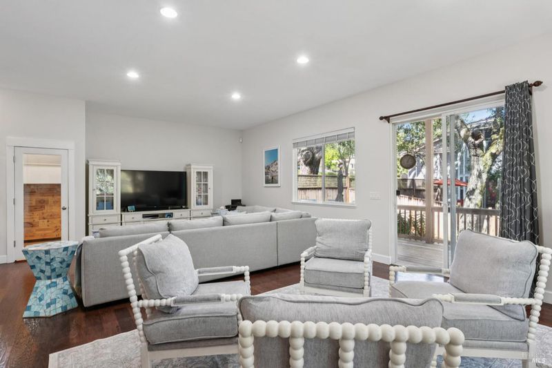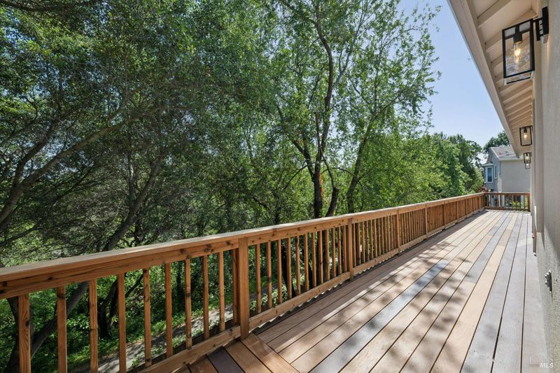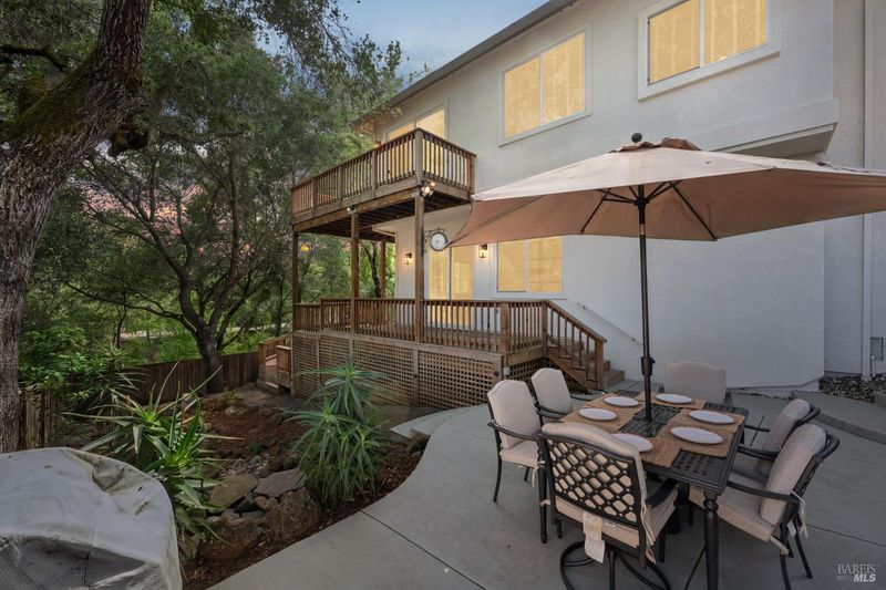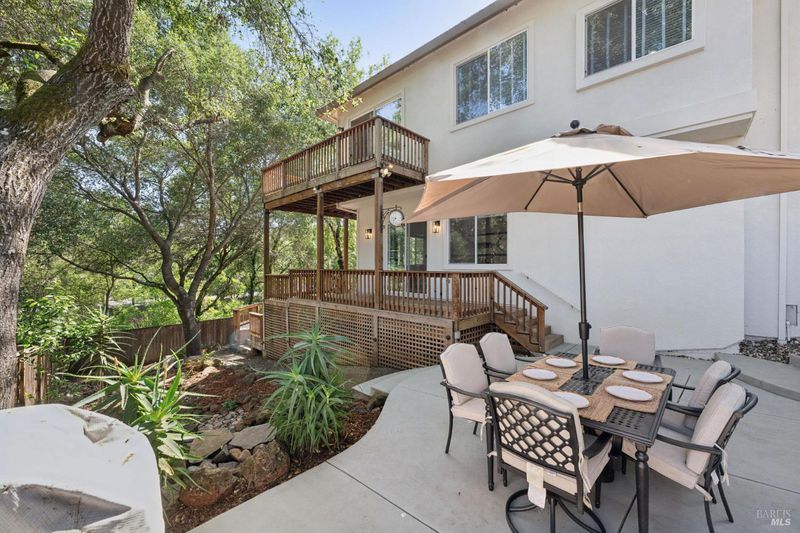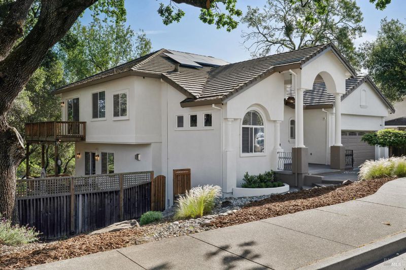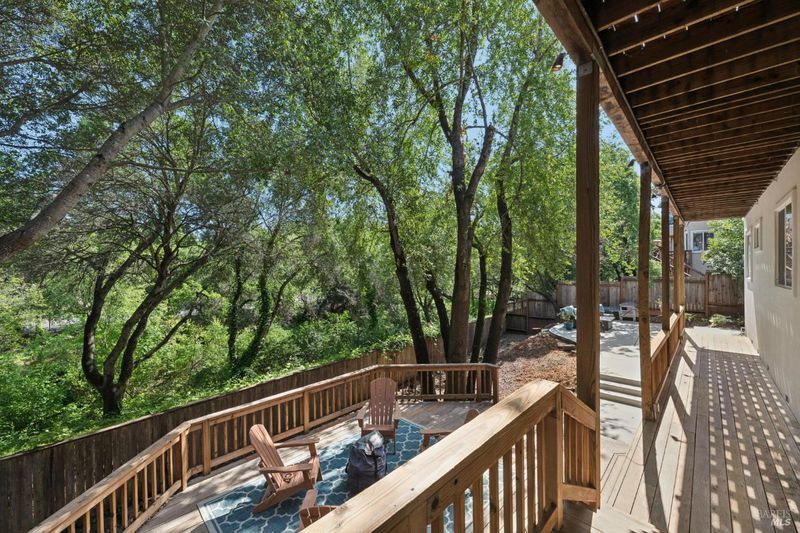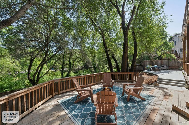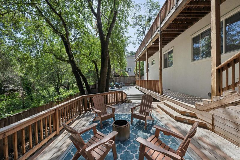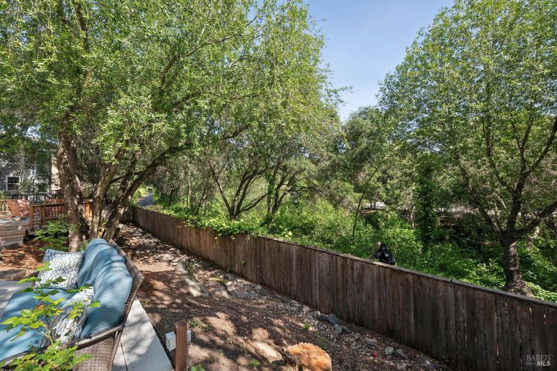 Enchanting recently updated multi-level home in Santa Rosa's highly desirable South East side neighborhood of Hampton Woods. Located within walking / biking distance is the fabulous outdoor shopping / dinning mall at Montgomery Village Shopping Center as well as spectacular Howarth Park / Spring Lake & Annadel State Park. This entertainers and family home backs up to delightful Brush Creek and is just steps from where Santa Rosa was born at Flat Rock. According to legend, Father Amoros, baptized a young Pomo Indian woman there in 1829. Being St. Rose's Feast Day he christened her Rosa from which the City eventually took its name. Built in 2005 and remodeled several times this just over 3000 sq. ft. home has 4 bed / 3 baths / an extra room that's been utilized as an office, gamers room and gym / yoga area. In addition there are living rooms on each floor with a custom reclaimed wood siding 168 bottle wine cellar on the lower level. The recently updated kitchen has tons of black granite counter space, storage and a large center island over 8 feet in length. All appliances are stainless with gas burner stove and wine fridge making this chefs kitchen an entertainers dream. The spacious primary bedroom is on the main level and has direct glass slider access to the substantial wrap around wooden decking giving evening views of the creek and exterior access to the glass sliders just outside the kitchen / dining room. To add a spa like touch the jetted tub in the primary has a dual sided gas fireplace area that allows romantic viewing directly though to the bedroom area. There is an additional dual sided gas fire place connecting the living room with the dining . kitchen area. As if all this wasn't enough there are several outdoor paved relaxing retreat areas as well as a fantastic outdoor kitchen / grilling area. To add to this properties serenity there is an incredible custom waterfall designed by Sonoma Cascades that provides tranquility and conversational privacy. Lastly, there is an abundance of parking with three spaces in the driveway as well as a paved side yard that can and has accommodated either a boat or small RV. The low to no maintenance yard makes living here hassle free. Owned Solar and EV charging panel in garage. This is one you don't want to miss and absolutely a must see in person.