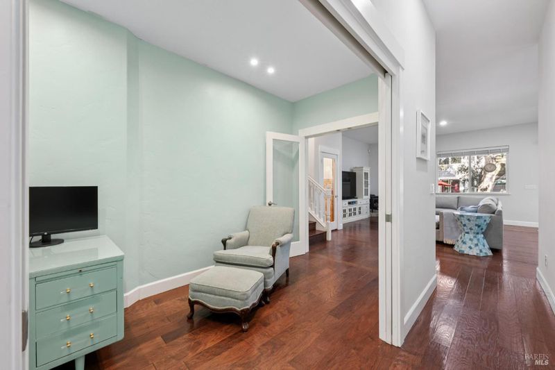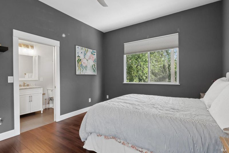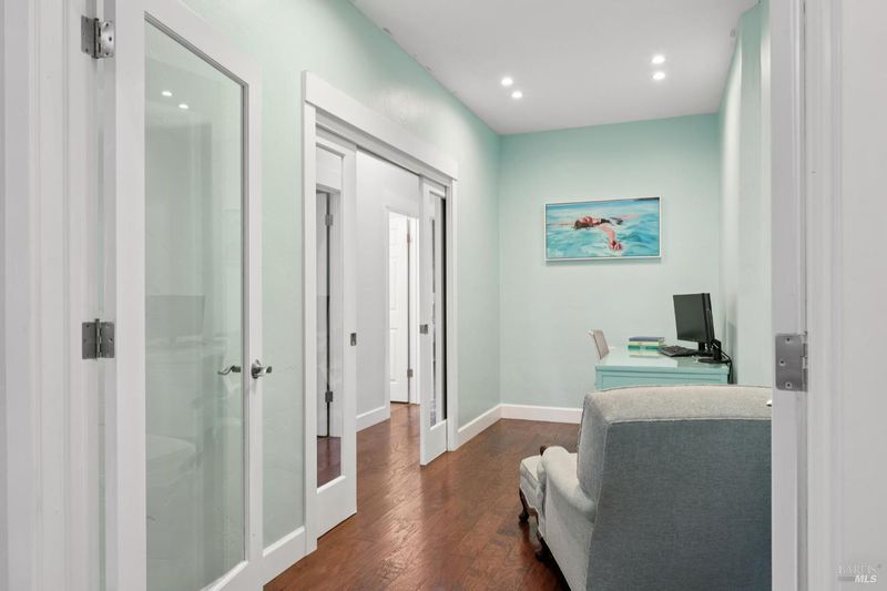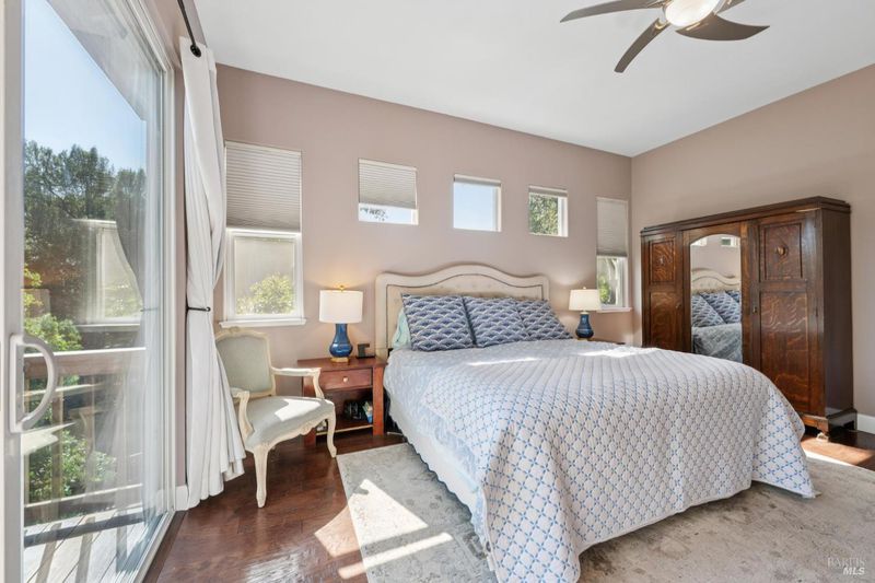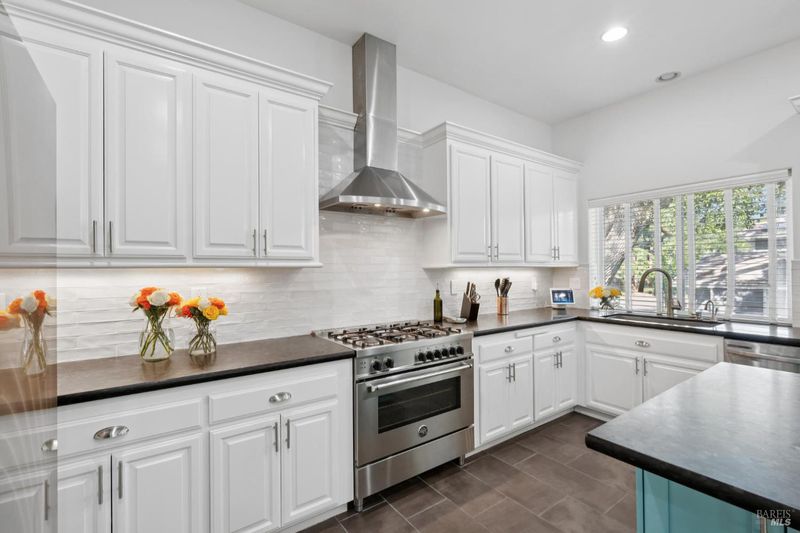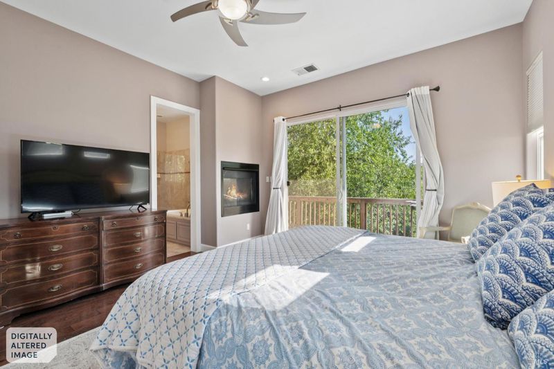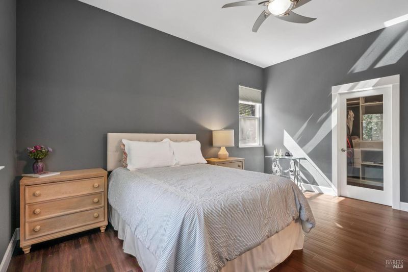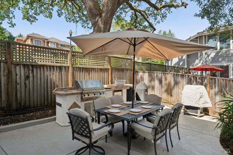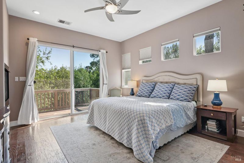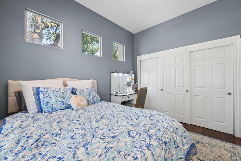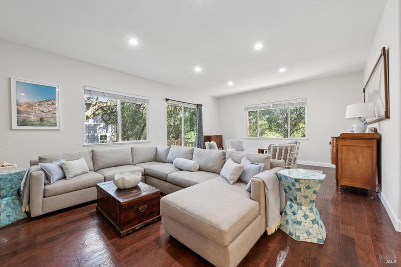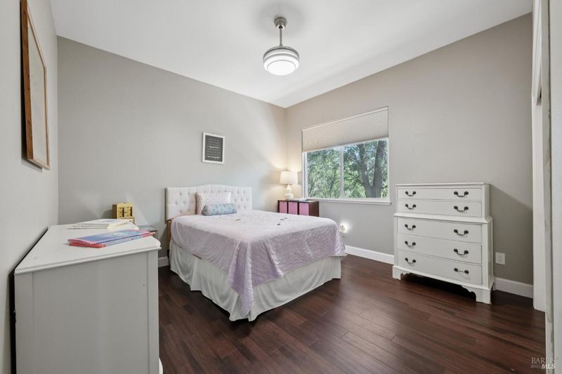 Enchanting recently updated multi-level home in Santa Rosa's highly desirable South East side neighborhood of Hampton Woods. Located within walking / biking distance is the fabulous outdoor shopping / dinning mall at Montgomery Village Shopping Center as well as spectacular Howarth Park / Spring Lake & Annadel State Park. This entertainers and family home backs up to delightful Brush Creek and is just steps from where Santa Rosa was born at Flat Rock. According to legend, Father Amoros, baptized a young Pomo Indian woman there in 1829. Being St. Rose's Feast Day he christened her Rosa from which the City eventually took its name. Built in 2005 and remodeled several times this just over 3000 sq. ft. home has 4 bed / 3 baths / an extra room that's been utilized as an office, gamers room and gym / yoga area. In addition there are living rooms on each floor with a custom reclaimed wood siding 168 bottle wine cellar on the lower level. The recently updated kitchen has tons of black granite counter space, storage and a large center island over 8 feet in length. All appliances are stainless with gas burner stove and wine fridge making this chefs kitchen an entertainers dream. The spacious primary bedroom is on the main level and has direct glass slider access to the substantial wrap around wooden decking giving evening views of the creek and exterior access to the glass sliders just outside the kitchen / dining room. To add a spa like touch the jetted tub in the primary has a dual sided gas fireplace area that allows romantic viewing directly though to the bedroom area. There is an additional dual sided gas fire place connecting the living room with the dining . kitchen area. As if all this wasn't enough there are several outdoor paved relaxing retreat areas as well as a fantastic outdoor kitchen / grilling area. To add to this properties serenity there is an incredible custom waterfall designed by Sonoma Cascades that provides tranquility and conversational privacy. Lastly, there is an abundance of parking with three spaces in the driveway as well as a paved side yard that can and has accommodated either a boat or small RV. The low to no maintenance yard makes living here hassle free. Owned Solar and EV charging panel in garage. This is one you don't want to miss and absolutely a must see in person.