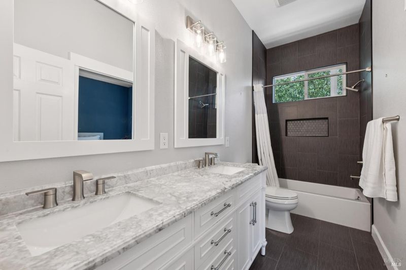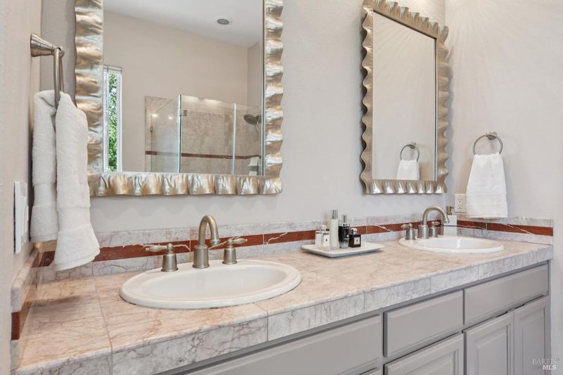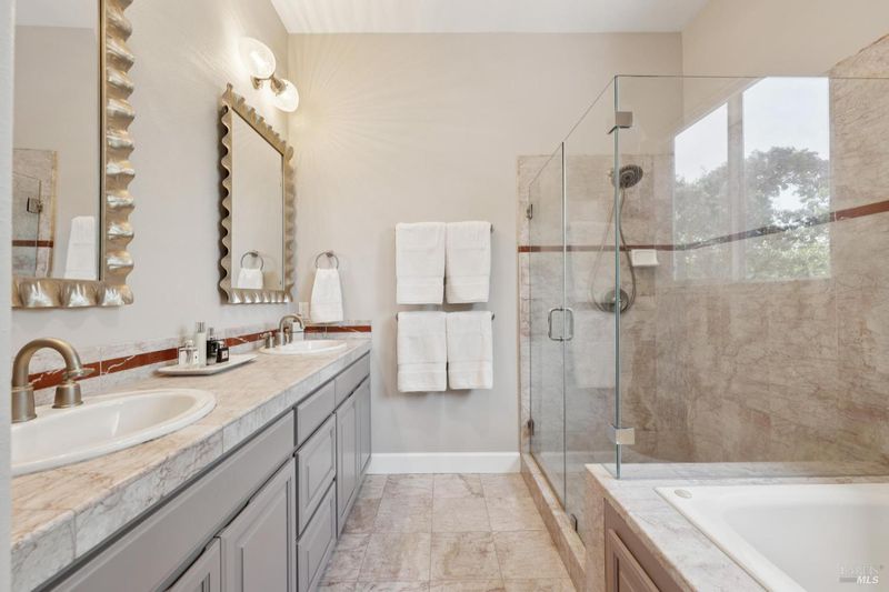 - Double Sinks, Jetted Tub, Low-Flow Toilet(s), Stone, Tile, Window