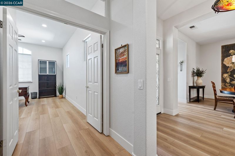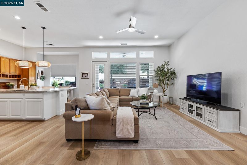 Beautifully Upgraded Chesapeake Floor Plan! Light, bright, and beautifully upgraded, this enhanced Chesapeake floor plan stands out from the moment you walk in. Extensively updated in 2024, the home features wide-plank luxury vinyl flooring, new baseboards, fresh interior and ceiling paint, and modern lighting throughout—creating a clean, cohesive feel across the home. The fully reimagined kitchen is the centerpiece, featuring stainless steel appliances, Taj Mahal quartzite countertops with a full-height backsplash, and a custom 8’x5’ island crafted for both everyday living and effortless entertaining. The layout is well designed, with open-concept and two spacious primary suites on opposite sides for privacy—ideal for guests or multigenerational living—plus a dedicated office and a flexible bonus room for hobbies, fitness, or additional living space. Step outside to a private backyard with no rear neighbors, complete with low-maintenance turf in both the front and back, a sprinkler system, and a remote-controlled awning that provides additional shade for comfortable outdoor living. Additional upgrades include owned solar with battery backup and no true-up electric bill, an EV charger, and all appliances included—delivering comfort, efficiency, and long-term value. Located in Summerset, a premier 55+ active adult community, residents enjoy resort-style amenities including an Olympic-size pool, spa, clubhouse, fitness center, pickleball, tennis, and bocce—all with low HOA dues. A home that delivers on every level—this is the one!