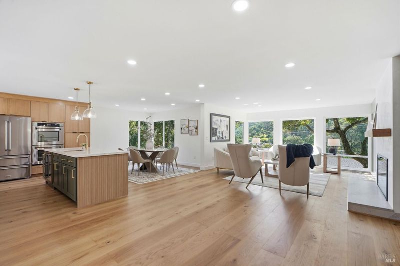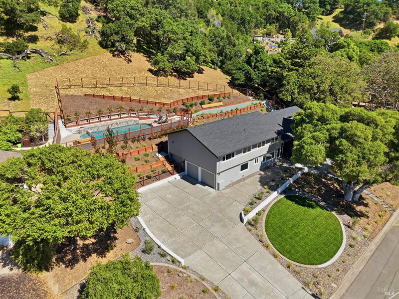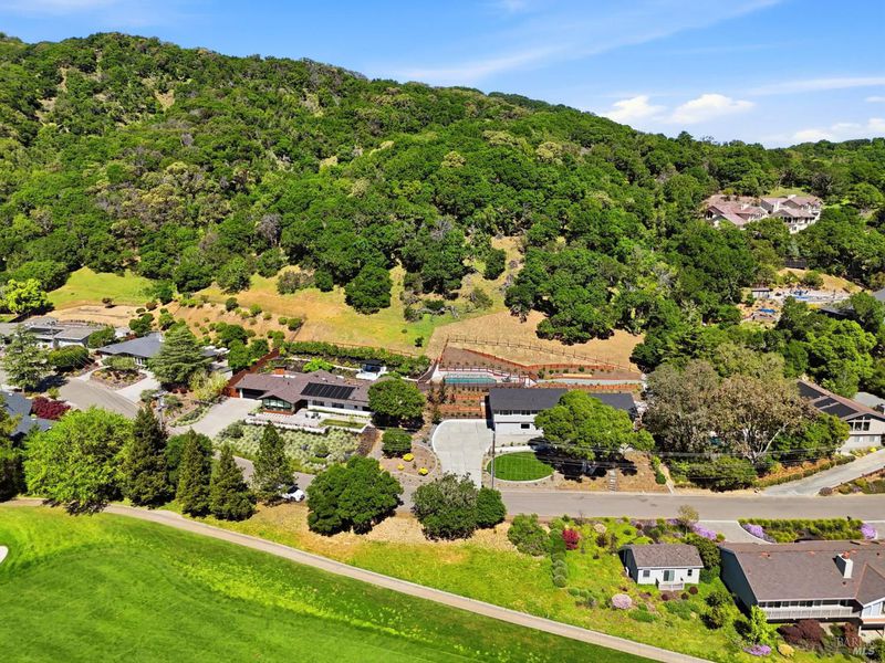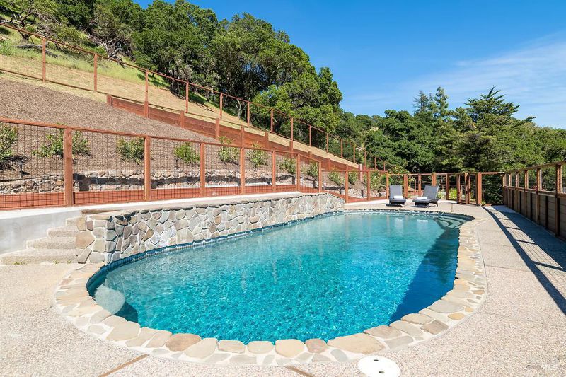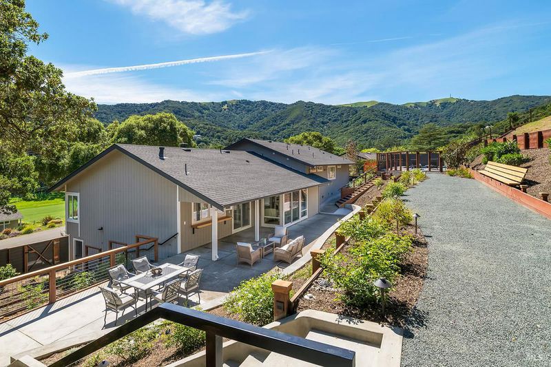 Design, Function and Finishes. Marin Country Club Lifestyle View Estate property overlooking lush green fairways and the scenic backdrop of Big Rock Ridge. A majestic oak tree and manicured grounds create a striking first impression, leading to a grand double-door entry that sets the tone for this transformed lifestyle property. Inside, open-concept living spaces unfold with effortless elegance. The gourmet kitchen features dual islands and flows seamlessly into the dining and living areas. Designed for both everyday living and elevated entertaining. The living room captures sweeping golf course and hillside views, anchored by a dramatic floor-to-ceiling Venetian plaster fireplace. A separate media and powder room provide additional space for relaxation and entertainment. The primary suite is a private retreat, complete with dedicated den and serene hill views. The spa-inspired primary bath offers a sculptural soaking tub, open shower design, and a custom walk-in closet. The main level also includes a secondary ensuite bedroom, two additional bedrooms, a full bath, and a conveniently located laundry/linen area. The lower level, accessed from the garage, is thoughtfully designed for everyday convenience. A dedicated mud area features hooks for coats, a bench, and a space for shoes, keeping the home organized and welcoming. This level also includes an additional bedroom, full bath, and laundry areaideal for guests, extended living, or flexible use. Outdoor living is equally impressive, with a spacious patio off the kitchen and family room, complete with a pass-through window and adjacent vegetable garden. An upper terrace invites you to relax poolside while taking in the expansive views. Additional highlights include hardwood flooring throughout, a two-car garage, dual laundry areas, and central heating and air conditioning. Ideally located near Marin Country Club, open space trails, shopping, schools, and transportation.