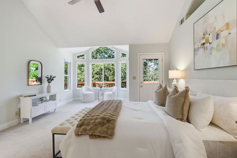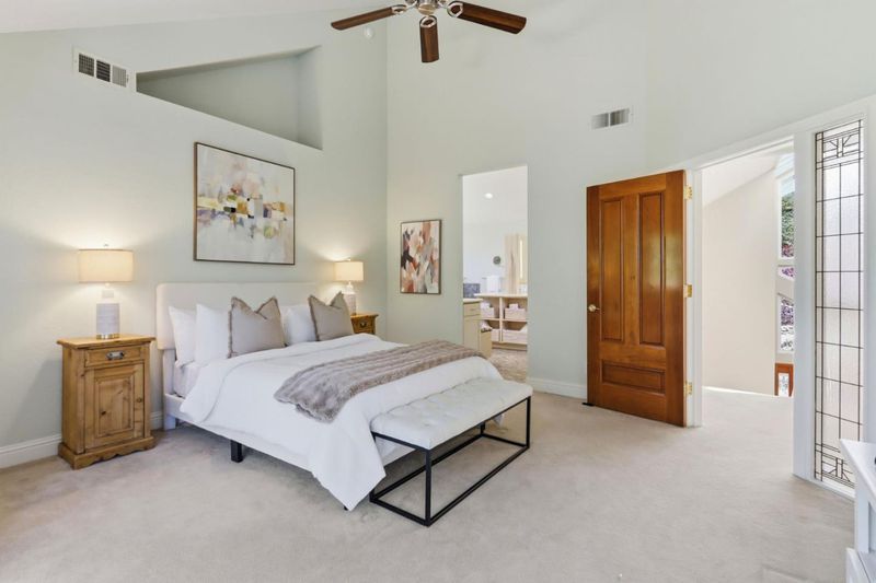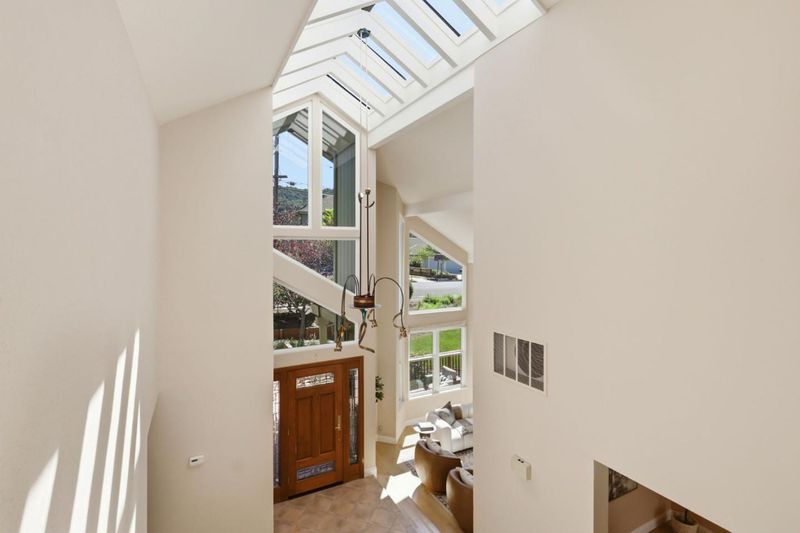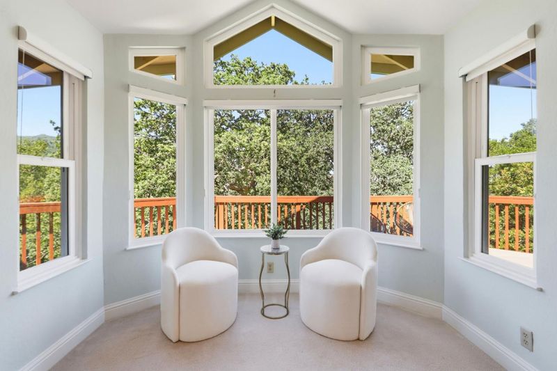 Open loft currently staged as an office/den is perfect 4th bedroom! A peaceful retreat on a quiet street just minutes from downtown Los Gatos. Beautifully designed and meticulously maintained, exceptionally bright home offers vaulted ceilings, multiple outdoor living areas and serene mountain views. Look up! The dramatic two story entry features a stunning ceiling of skylights and an artesian chandelier! Elegant living room with a marble fireplace. An updated kitchen is perfect for entertaining and features granite counters, a large center island with breakfast bar, GE Monogram built-in SS refrigerator/freezer, Thermador gas range, Bosch dishwasher, 2 sinks,& abundant custom cabinetry. Primary suite offers a private sitting area, vaulted ceilings, an enormous bath with dual vanities, Jacuzzi tub, skylights, and walk in closet complete with beautiful closet organizers. Yes! There's an attached 2 car garage; this home has it all! Outdoor living includes wraparound redwood decking, a private slate patio with fire pit, and beautifully landscaped grounds with mature oak trees. Additional features include central heat and A/C, dual pane windows, don't miss the walk-in attic off primary bath.