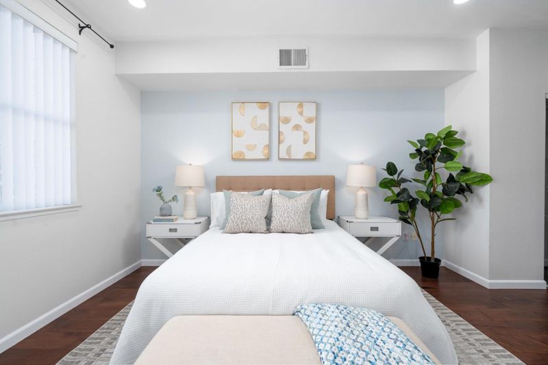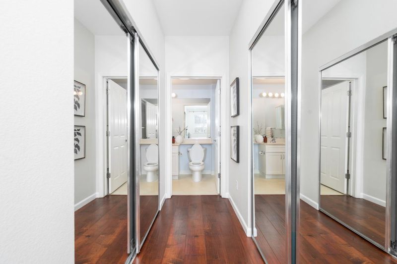 Welcome to this charming 2-bedroom, 2-bathroom home in East Palo Alto, offering comfort, convenience, and a bright open layout. Both bedrooms are on the opposite side offering privacy and a suite-like feeling with full baths on each side. This inviting residence features hardwood flooring done in 2018 throughout and high ceilings. Balcony access from both the bedrooms. Kitchen includes a dishwasher, microwave, electric oven range, and refrigerator, flowing seamlessly into the dining and living areas for easy everyday living and entertaining. Enjoy year-round comfort with central air conditioning and central forced air heating. An in-unit washer and dryer provide added convenience, while a one-car gated garage offers secure parking and one additional parking outside. Residents also enjoy access to a community pool, making this home an excellent opportunity for those seeking modern amenities in a vibrant and convenient location. From Great Schools: Ravenswood City Elementary School District Menlo-Atherton High School | Sequoia Union High School District