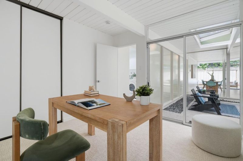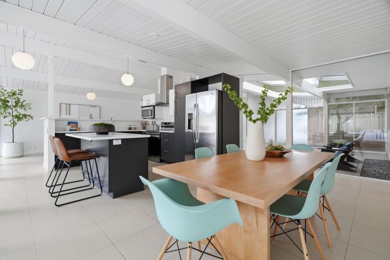 Beautifully updated 4-bedroom Eichler in one of Sunnyvales most sought-after neighborhoods, priced below comparable homes in the area, a rare opportunity to own a classic mid-century modern at an accessible entry point. A signature central atrium fills the home with natural light, creating the seamless indoor-outdoor connection Eichlers are known for. The spacious living room features a fireplace and a wall of windows, while the upgraded kitchen opens to the family room and a private patio surrounded by a lush California coastal garden perfect for entertaining or relaxing. The functional 4-bedroom layout, abundant natural light, and timeless Eichler design make this home both livable today and full of potential to personalize over time. An updated, fully operational radiant heating system a rare and valuable benefit for Eichler homes adds comfort and peace of mind. Centrally located near Las Palmas Park and the Sunnyvale Community Center, just minutes from downtown Sunnyvale. Close to major tech campuses and convenient shopping, including Trader Joes and Sprouts, with easy access to Highways 280 and 85. Top-rated schools nearby include Cumberland Elementary, Sunnyvale Middle, and Fremont High School (buyer to verify).