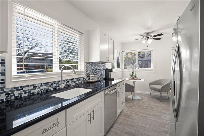 Tastefully updated Garcia home situated on a tree lined street in a fabulous Cambrian neighborhood. Remodeled kitchen with white shaker cabinets, slab granite counter tops, custom tiled backsplash, stainless steel appliances, gas oven/range, microwave, dishwasher and sink. Breakfast nook and built-in pantry. Living & dining room combination with a wood burning fireplace. Three bedrooms all with ceiling fans and mirrored closet doors. Newer interior doors and hardware. Wood blinds throughout. Custom updated tiled hall bathroom with new glass shower enclosure. Primary suite with porcelain tiled surfaces, stall shower with custom tiled banner. Laminate wood flooring throughout. Double pane windows and slider. Freshly painted interior. Central forced air heating and air-conditioning. Newer roof & gutters in 2020. Newer garage door and opener in 2020. Freshly updated landscaping. New Tough Shed for extra storage. New custom wood swinging gate to park extra vehicles, boats or trailer on side yard. Some newer fencing. Three car driveway and two car garage. Large and spacious backyard. Centrally located strolling distance to Carlton Elementary, Union Middle, and Blue Ribbon Award winning Leigh High School. Close to Safeway, Starbucks and The Cantina. Easy commuting to all major freeways
