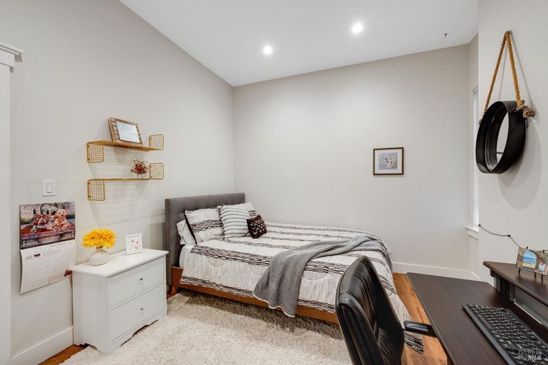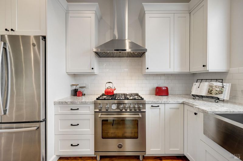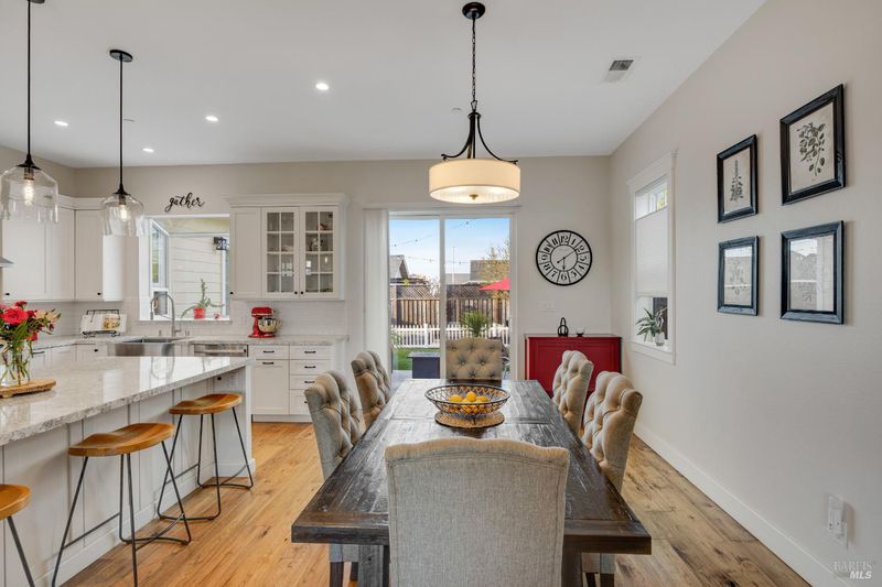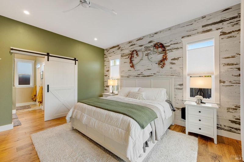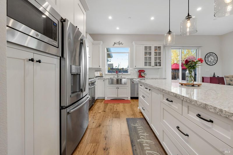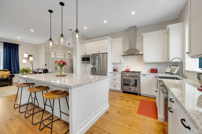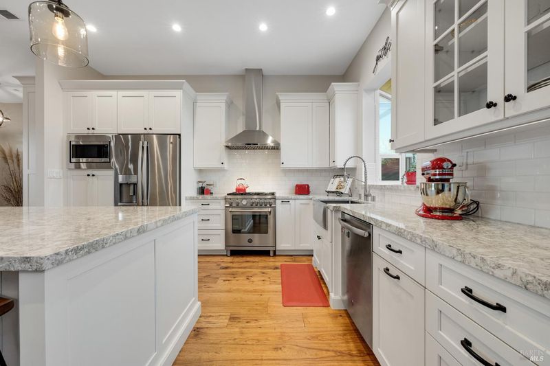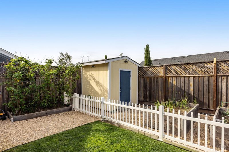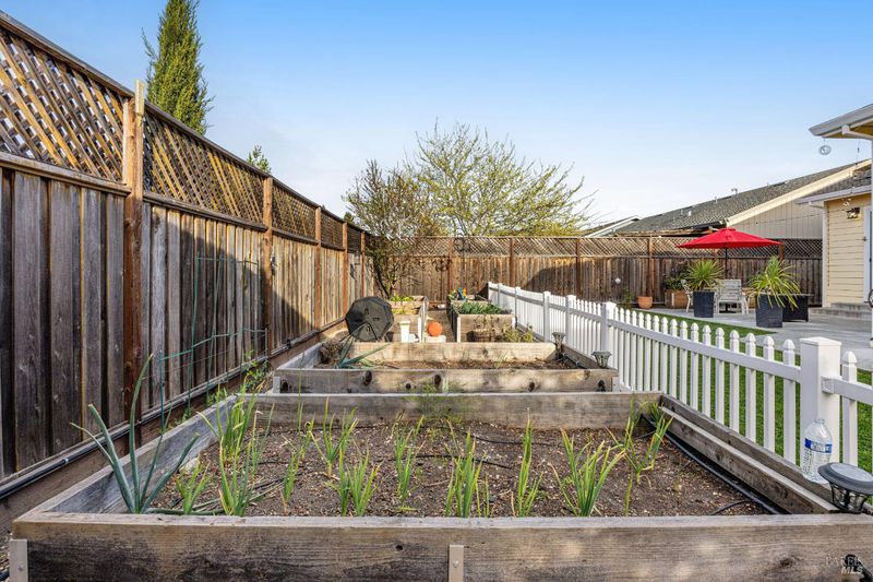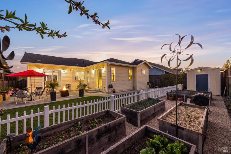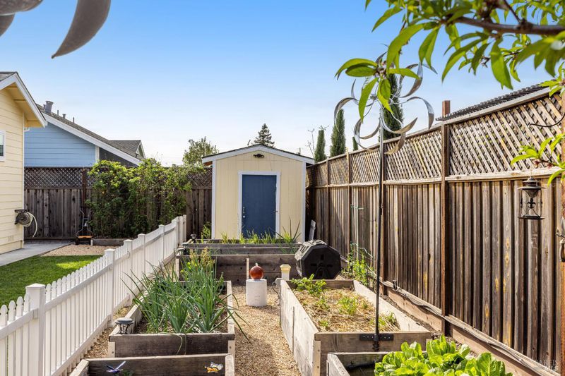 Beautiful single-level Coffey Park home offering 3 bedrooms, 2 full baths, and 1,644 sq.ft. on a generous 6,744 sq.ft. lot. The welcoming entry features custom display shelving, 10-foot ceilings, extra-wide baseboards, and hickory wide-plank flooring throughout the main living areas and bedrooms. The open great room design connects the living, dining, and kitchen areas, creating a comfortable space to gather and enjoy everyday living. The kitchen includes a large island with bar seating, farmhouse sink with garden window, quartz countertops, subway tile backsplash, stainless appliances including a Bertazzoni range, and custom white cabinetry with soft-close doors and pull-out shelving. The primary suite offers a relaxing retreat with a barnwood-style accent wall, sliding barn door, walk-in closet with organizers, and a well-designed bath. Step outside to the backyard with patio space, lawn area, coordinating shed and a fenced garden with raised bedsperfect for relaxing, gardening, or enjoying Wine Country evenings. Conveniently located near parks,schools, shopping, hospitals, and Highway 101.