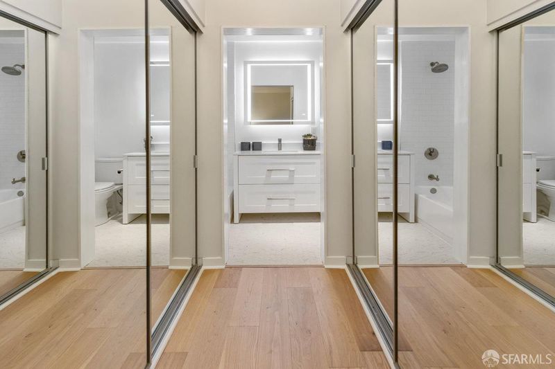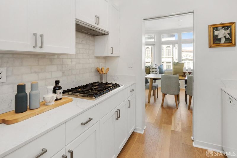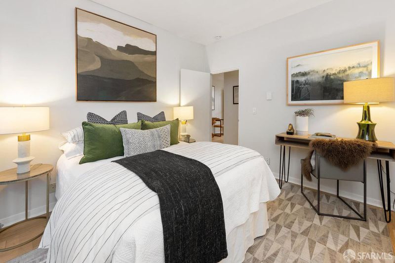 Enjoy the lifestyle in one of San Francisco's finest neighborhoods. Macondray Lane is a charming tree-lined walkway found on the northern slope of Russian Hill, within a few short blocks of Washington Square with all the conveniences, landmarks and world class dining found in North Beach. This stylish contemporary 2 bed / 2 bath condo offers an open living/dining room with an abundance of natural light with some views to boot. Tasteful modern renovations with newer flooring throughout, recessed lighting, remodeled kitchen and baths along with wood burning fireplace complete the living space. The primary bedroom has spacious closets and en-suite bath while the spacious 2nd bedroom gives access to a quiet private patio. Both bedrooms are nestled in the back and overlook lush vegetation within the common areas of the complex. The hillside complex runs from Macondray Ln down to Union St., so parking is very easy within the building, larger storage and moving items is a breeze with the hillside funicular.