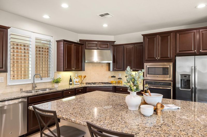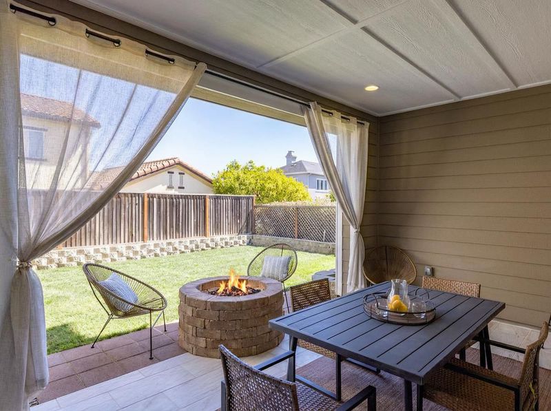 East Garrison remains one of the few new home developments within easy reach of the Monterey Peninsula. Warren Avenue is a wide, sun-drenched street where the community's signature pride of ownership resounds through every manicured yard, and residents enjoy a sprawling park just seconds away. This immaculate home is on the market for the first time since it was built, and it appears in true showroom condition. Step inside, and sense the grand scale immediately. An open concept living and dining area flows into a gorgeous kitchen and, through windows lining nearly every wall, the fenced backyard with its built-in fire pit and covered patio is visible from the moment you walk through the front door. Dark wood cabinetry, granite countertops, a cream tile backsplash, a massive pantry, a five-burner gas range, and a breakfast bar fill a kitchen to satisfy the most discerning chefs. A wide carpeted staircase sweeps up to a second level with three bedrooms and a lofted bonus space or home office. But the true discovery appears before you ever enter the home: a curtained outdoor sunroom off the front porch, custom-built and lit naturally by massive square-paned windows. Pull back the drapes on a sunny afternoon, set down your coffee, and feel the luxury of a home that wants for nothing.
