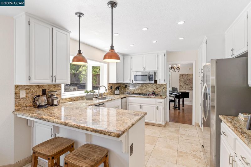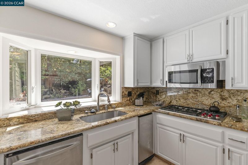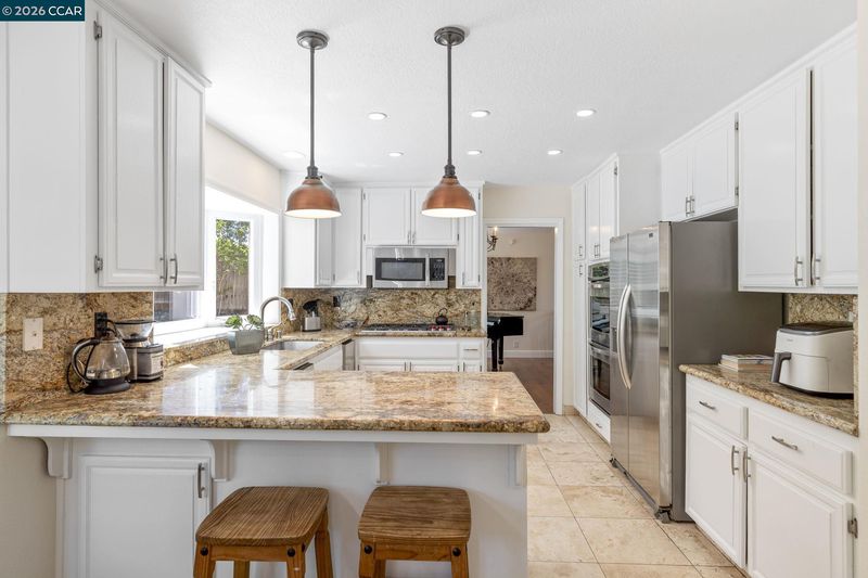 - Double Oven, Gas Range, Microwave, Oven, Refrigerator, Self Cleaning Oven, Breakfast Bar, Breakfast Nook, Stone Counters, Eat-in Kitchen, Disposal, Gas Range/Cooktop, Oven Built-in, Pantry, Self-Cleaning Oven, Updated Kitchen