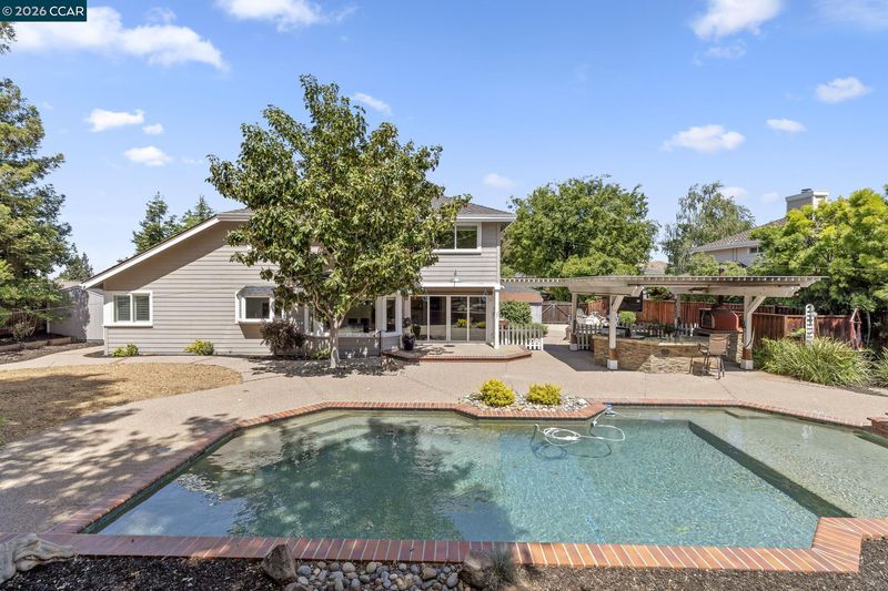 Tucked away on a peaceful cul-de-sac at the foothills of Mount Diablo, 1267 Quiet Circle offers a rare opportunity to own a truly one-of-a-kind property on the border of Clayton and Concord. This amazingly gorgeous home showcases exceptional pride of ownership in every detail, blending luxury, comfort, resort-style living and a short walk to top rated local schools! From the moment you arrive, you’ll notice the craftsmanship and care that sets this home apart - highlighted by a MUST-SEE custom garage and an expansive lot of over 16,000 square feet. The beautifully landscaped backyard is an entertainer’s dream, featuring a stunning in-ground Pebble Tec pool and spa, a custom outdoor fireplace with seating area, and a covered outdoor kitchen complete with a wood-burning pizza oven, BBQ, TV, and more. With large RV parking, custom planter boxes, and abundant space to host family and friends, this outdoor setting delivers the ultimate California lifestyle. Inside, the home continues to impress with tasteful updates including fresh paint and brand new carpeting throughout. Enjoy a chef’s kitchen equipped with a Wolf stove, wine fridge, and elegant granite countertops, all opening seamlessly to the home’s spacious living areas. Multiple gathering spaces - including the family room, living room, dining room, and wet bar - offer flexibility for both everyday living and entertaining. Two cozy gas fireplaces add warmth and charm. Upstairs, you’ll find four generously sized bedrooms, including a luxurious primary suite with an elevated retreat/office, large walk-in closet, and beautifully updated bathroom with jeted tub - creating a perfect sanctuary to unwind. Combining an unbeatable location, impressive upgrades, and resort-style amenities, 1267 Quiet Circle is a standout property that truly has it all.