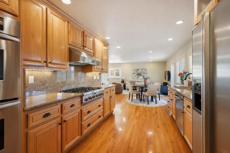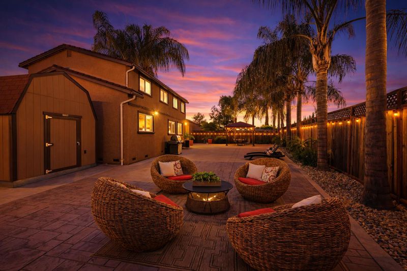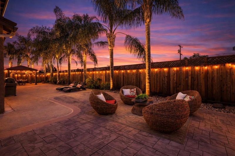 Beautifully upgraded and thoughtfully maintained home featuring hardwood floors, custom solid wood shutters, solid core interior doors, and elegant oil-rubbed bronze hardware. The gourmet kitchen offers granite countertops and premium Thermador appliances. Natural light fills the home with a large skylight and recessed lighting throughout. The spacious primary suite includes a retreat area (formerly the fifth bedroom), walk-in closet, and custom organizers. Major upgrades include solar, 200-amp electrical service, copper plumbing, dual-pane windows, new insulation including under-floor, and a newly refinished foam and stucco exterior. Enjoy travertine baths, a striking wood and iron staircase, and detailed case molding. Outdoors, relax in the spa surrounded by beautifully landscaped, low-maintenance grounds with mature palms, automatic irrigation, custom colored concrete patios, and a large storage shed. Top rated schools - Oster Elementary and Branham High.