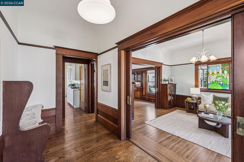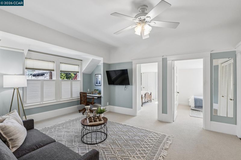 On a vibrant corner in Alameda’s sought-after East End, this romantic Victorian beautifully captures the charm of the city’s rich architectural heritage. The striking front façade showcases bold jewel tones, stained glass, intricate trim, and prominent bay windows-creating a sense of admiration and timeless curb appeal. Inside, original early-1900s millwork shines with rich wood tones and detailed craftsmanship, preserving the home’s authentic character throughout. Abundant natural light fills each room, highlighting the texture and elegance of classic Victorian design while maintaining a bright, refreshed feel. Thoughtfully updated spaces, including the kitchen and downstairs bathroom, blend modern comfort with vintage-inspired finishes for a seamless balance of old and new. Upstairs, the spacious primary suite features two walk-in closets, accompanied by two additional bedrooms and a versatile bonus room. New carpet enhances the fresh, airy atmosphere. A lush patio off the downstairs bedroom offers a peaceful retreat, while the multi-level backyard deck is perfect for entertaining, gardening, or relaxing. Additional highlights include a spacious basement with storage and workspace, a detached two-car garage, and a well-maintained yard with drip and sprinkler systems.