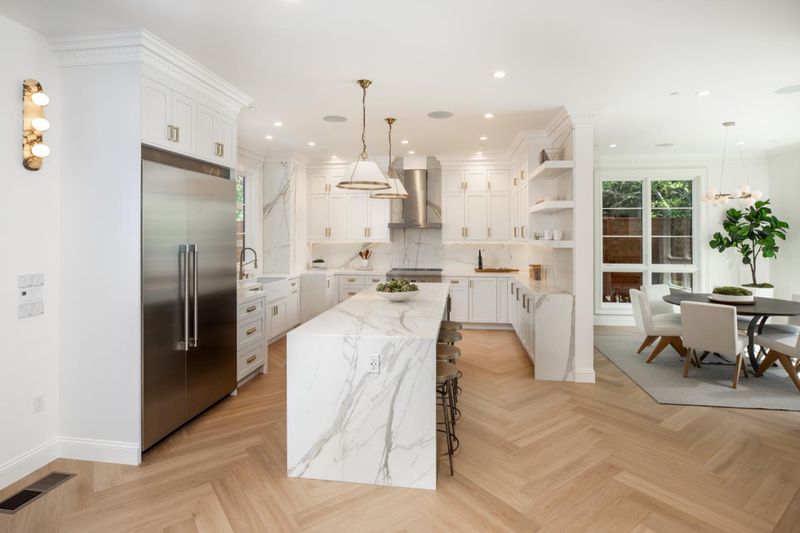 New custom home showcases exceptional quality, design, and craftsmanship rarely found in new construction. Thoughtfully curated with imported materials and distinctive architectural details, the home reflects a refined yet enduring aesthetic. From the artistically carved wood front door and all-wood eaves with corbels to herringbone-patterned hardwood floors, every element has been carefully selected.The main living spaces are designed for both comfort and scale, with a strong connection to the outdoors. The living room is anchored by a linear fireplace set within a dramatic wall of marble, while a retractable wall of glass opens fully to the rear yard for seamless indoor-outdoor living. Stunning kitchen with Italian cabinetry, marble surfaces, and a waterfall-edge island,Thermador and Sub-Zero appliances. Luxurious primary suite with balcony, customized walk in closet, zen like bath with stunning marble tile accents, soaking tub, and two additional bedroom suites with custom closets and each with beautiful bathrooms. Fully landscaped yard with built in seating area. Additional highlights-dedicated office with custom built-ins, main-level studio ADU with private entry and kitchen, solar and EV charging. Ideally located on a premier street near Woodside Plaza.