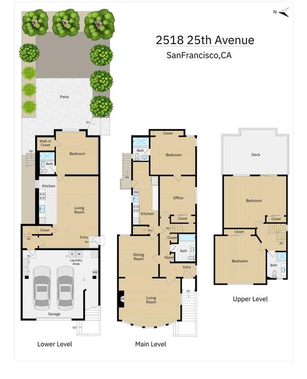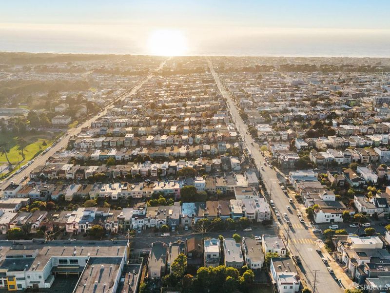 Located in San Francisco's popular Parkside neighborhood near Ocean Beach, this radiant Marina-style home captures the magic of coastal living. Built in 1927 on an extra-wide 30' x 120' lot, the home unfolds with beautiful scale and an easy, natural flow. The main level welcomes you with a gracious entry and a sunlit living room framed by a wall of west-facing windows and a classic fireplace - an ideal setting for both quiet mornings and lively gatherings. The formal dining room connects seamlessly to a beautifully renovated eat-in kitchen, with direct garden access, inviting effortless indoor-outdoor living. Tucked quietly at the rear, the expansive primary suite feels like a private retreat, complete with a separate den or office, an updated en-suite bath, and abundant closet space. A second full bath, thoughtfully remodeled, serves the main level. Upstairs, two generous bedrooms offer distinct outlooks - one with a large east-facing deck overlooking the rolling San Francisco hills, the other with glimpses of the Pacific - alongside a stunning full bath. The lower level adds incredible flexibility, with a spacious suite featuring its own living area, remodeled kitchen, bedroom with en-suite bath, and private side entrance - ideal for guests, extended living, or evolving needs over time. Throughout the home, refinished hardwood floors, updated lighting, and a large garage with laundry and storage add comfort and practicality. Set near Ocean Beach, Pine Lake Park, and Stern Grove, with beloved neighborhood cafes, shops, and easy transit access nearby, this is a home that offers both peaceful retreat and everyday convenience. Lovingly owned by the same family for more than 25 years, it carries a sense of warmth, care, and continuity - ready for its next chapter.